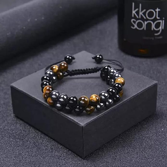 Tiger Eye- Hematite-Black Obsidian Bracelet – Double Layer for Protection, Remove Negative Energy .